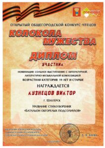 При поддержке Министерства культуры ДНР члены Медиацентра Шахтерского колледжа кино и телевидения имени А.А. Ханжонкова приняли участие в Открытом общегородском конкурсе “Колокола Мужества – 2026” Уссурийского городского округа Приморского края. Конкурс был посвящен ратному подвигу всех, кто сражался за Родину в разные периоды истории, а также нынешним героям – участникам СВО. В номинации сольное выступление …