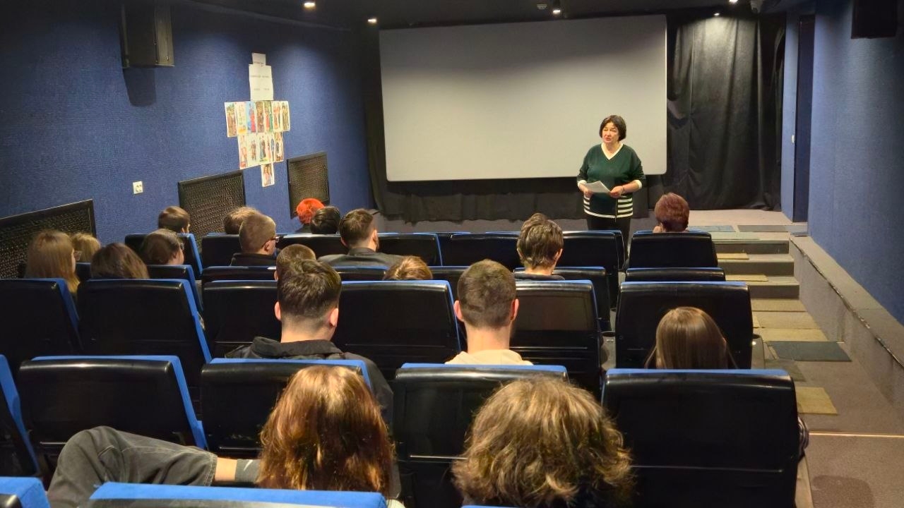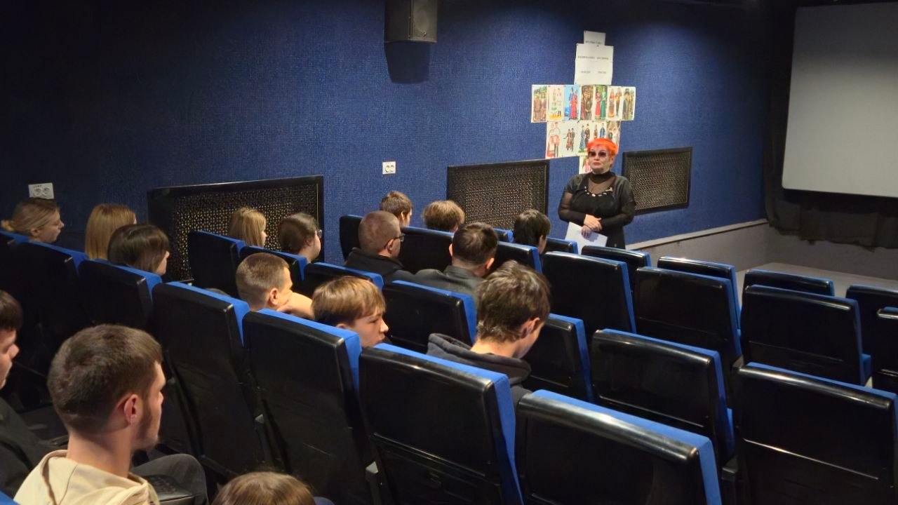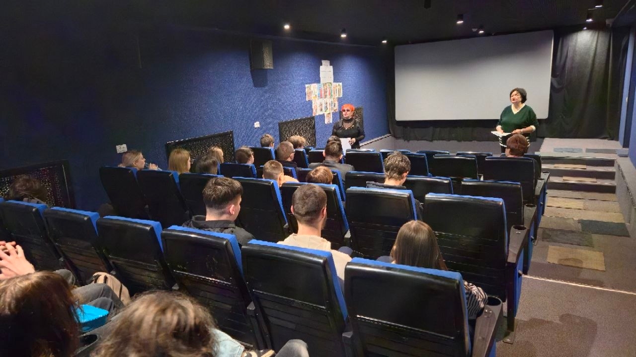 Перед началом кинопоказа библиотекарь колледжа Наталья Цыганкова ознакомила студентов с биографией мастера, рассказала о фильмографии.