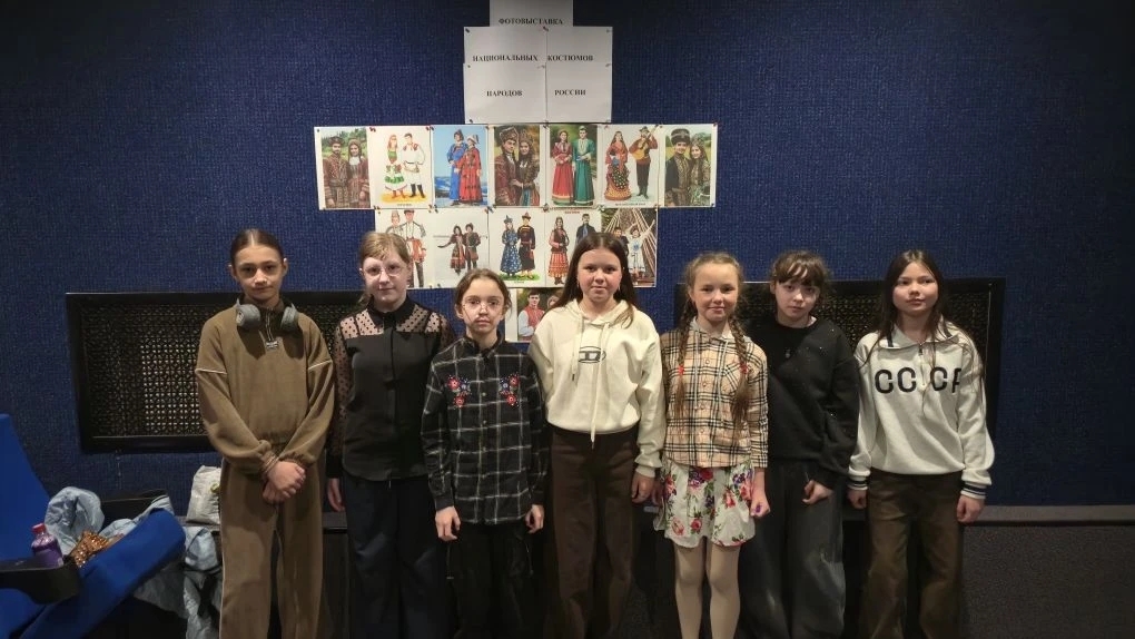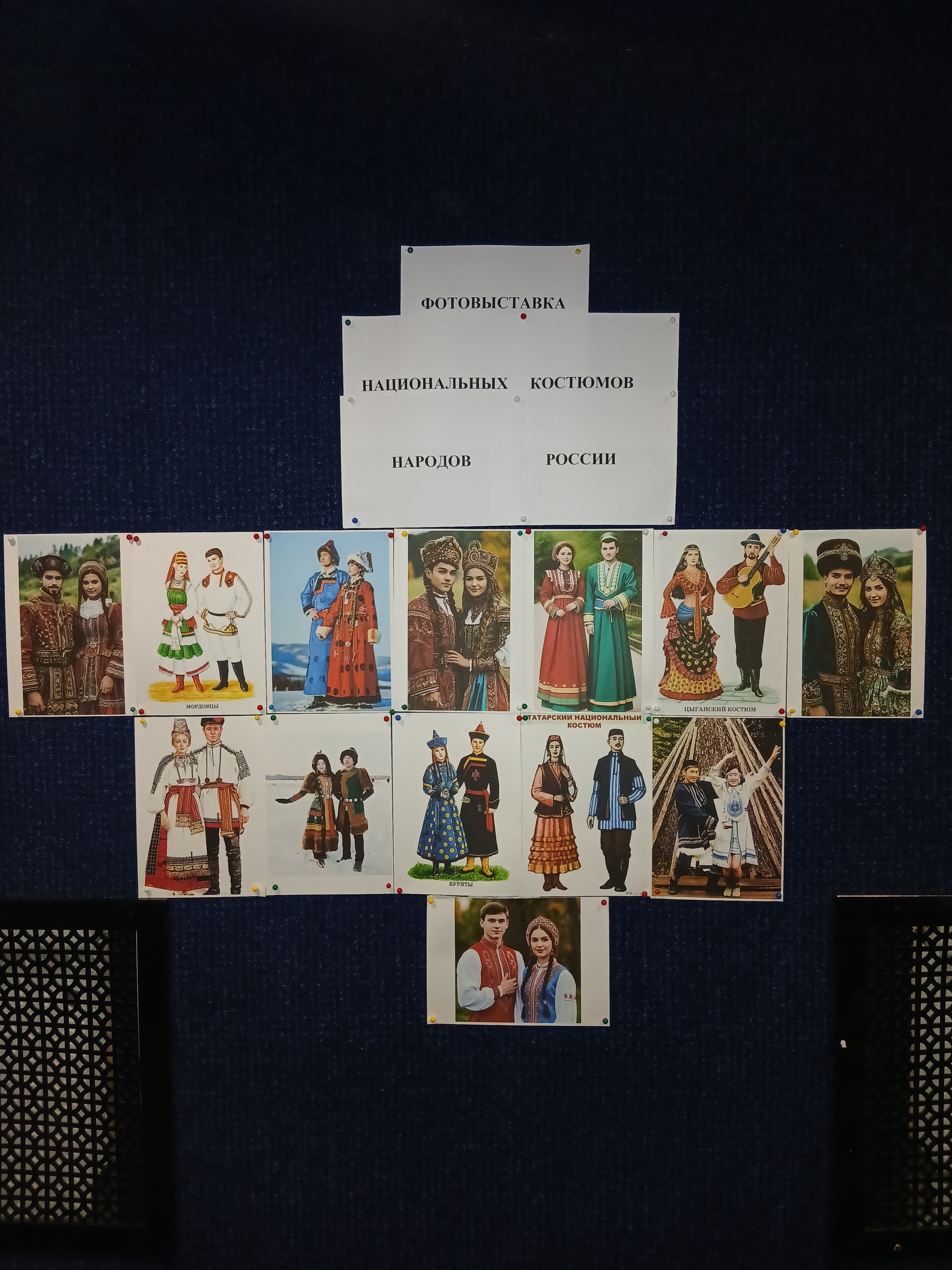 В кинотеатре ребята побывали на фотовыставке национальных костюмов народов России, и выяснили насколько разнообразны и колоритны народы, проживающие на территории нашей Родины.