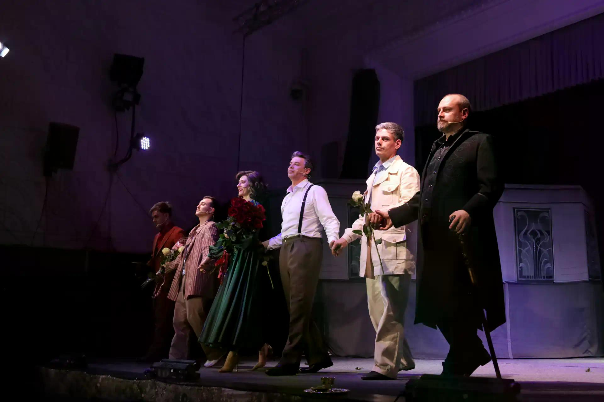 Творческое воплощение культового произведения осуществил режиссёр Антон Непомнящий: он не только предложил собственную сценическую версию, но и исполнил несколько ключевых ролей. Над сценографией и музыкальным оформлением постановки работала столичная команда — сценограф Полина Харитонова, композиторы Маруся Бережная и Кирилл Лазарев. Их совместная работа позволила создать выразительное художественное и звуковое решение, задающее уникальную атмосферу спектакля. Подробности — на сайте Министерства культуры ДНР.
