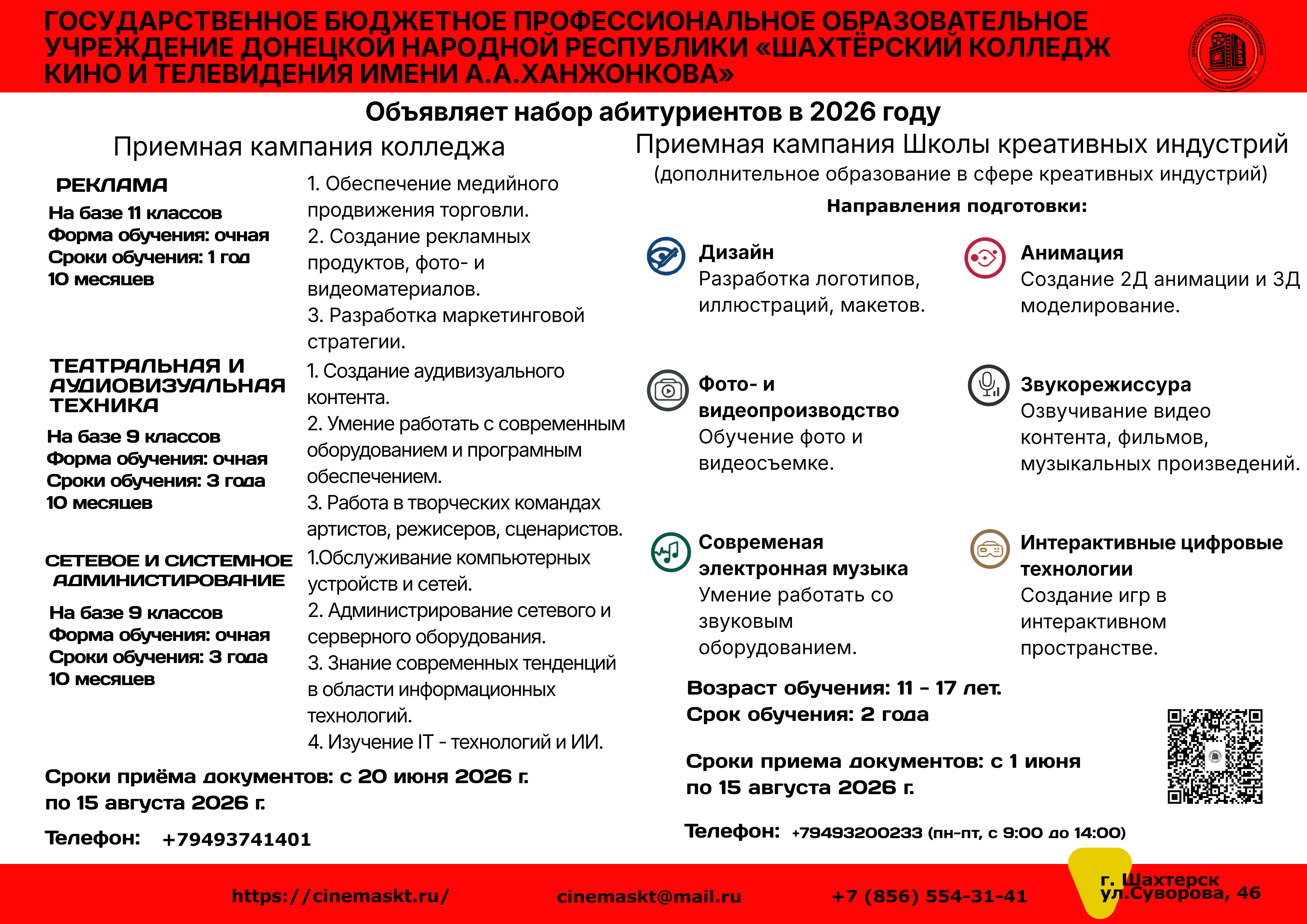 27 марта 2026 года преподаватели ГБПОУ ДНР «Шахтёрский колледж кино и телевидения им. А.А. Ханжонкова» провели профориентационную встречу с обучающимися 9-11 классов в ГБОУ “Лицей “Олимп” г.о. Харцызск”
